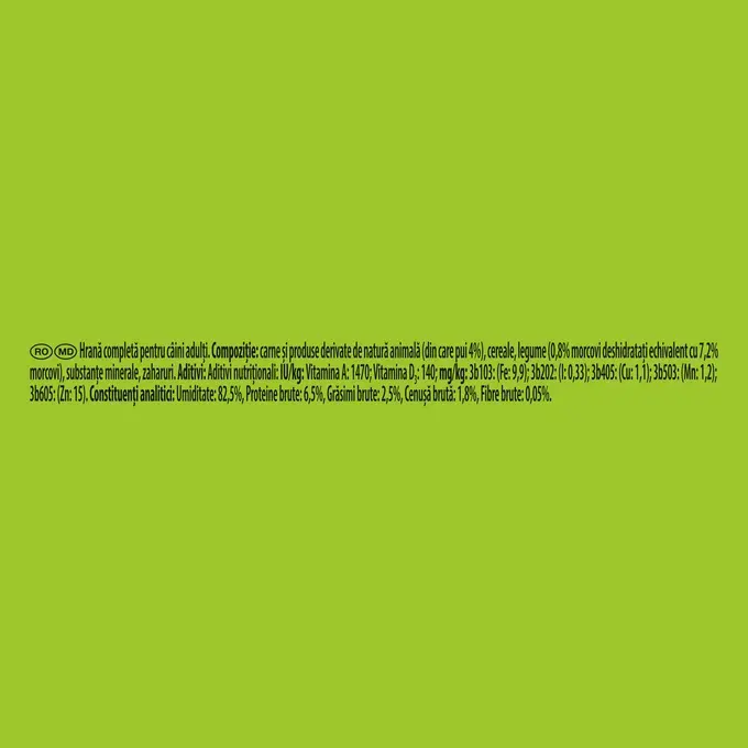 Friskies cu Pui și Morcov în sos este o hrană umedă completă și delicioasă, special formulată pentru câini adulți. Fiecare plic conține nutrienți esențiali pentru a susține un stil de viață activ, o digestie sănătoasă și un aspect radiant al blănii.