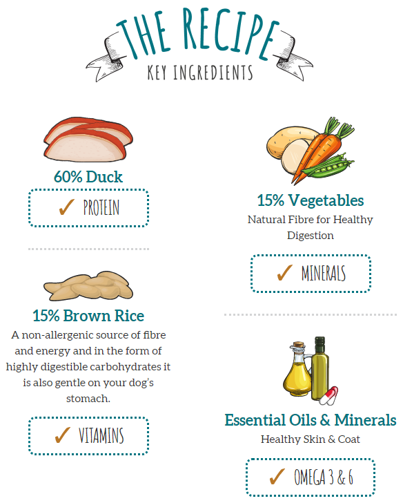 60% carne de rață – O alternativă ideală pentru câinii cu intoleranță la alimentele comune, bogată în proteine și nutrienți.