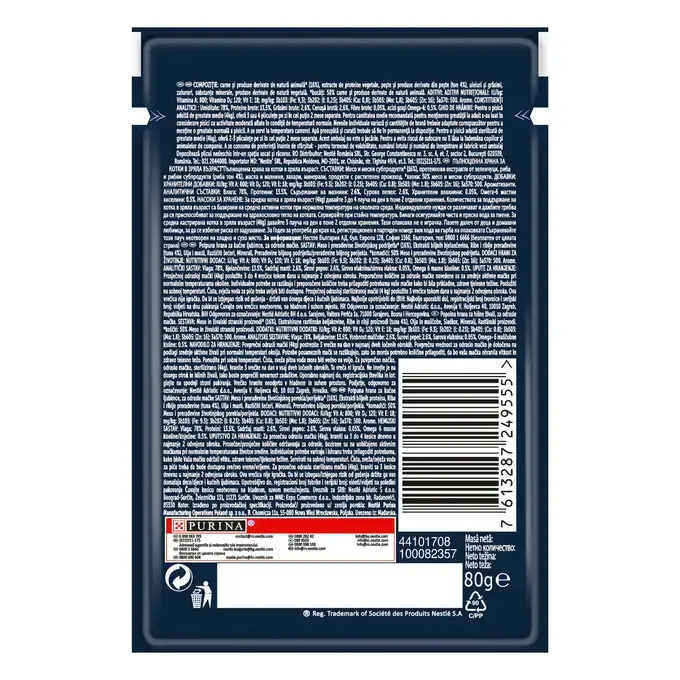Pentru o pisică adultă sterilizată de greutate medie (4 kg): oferă 2-3 pliculețe pe zi, împărțite în cel puțin 2 mese.