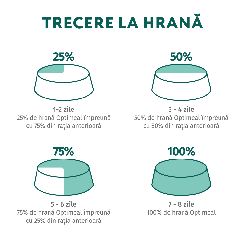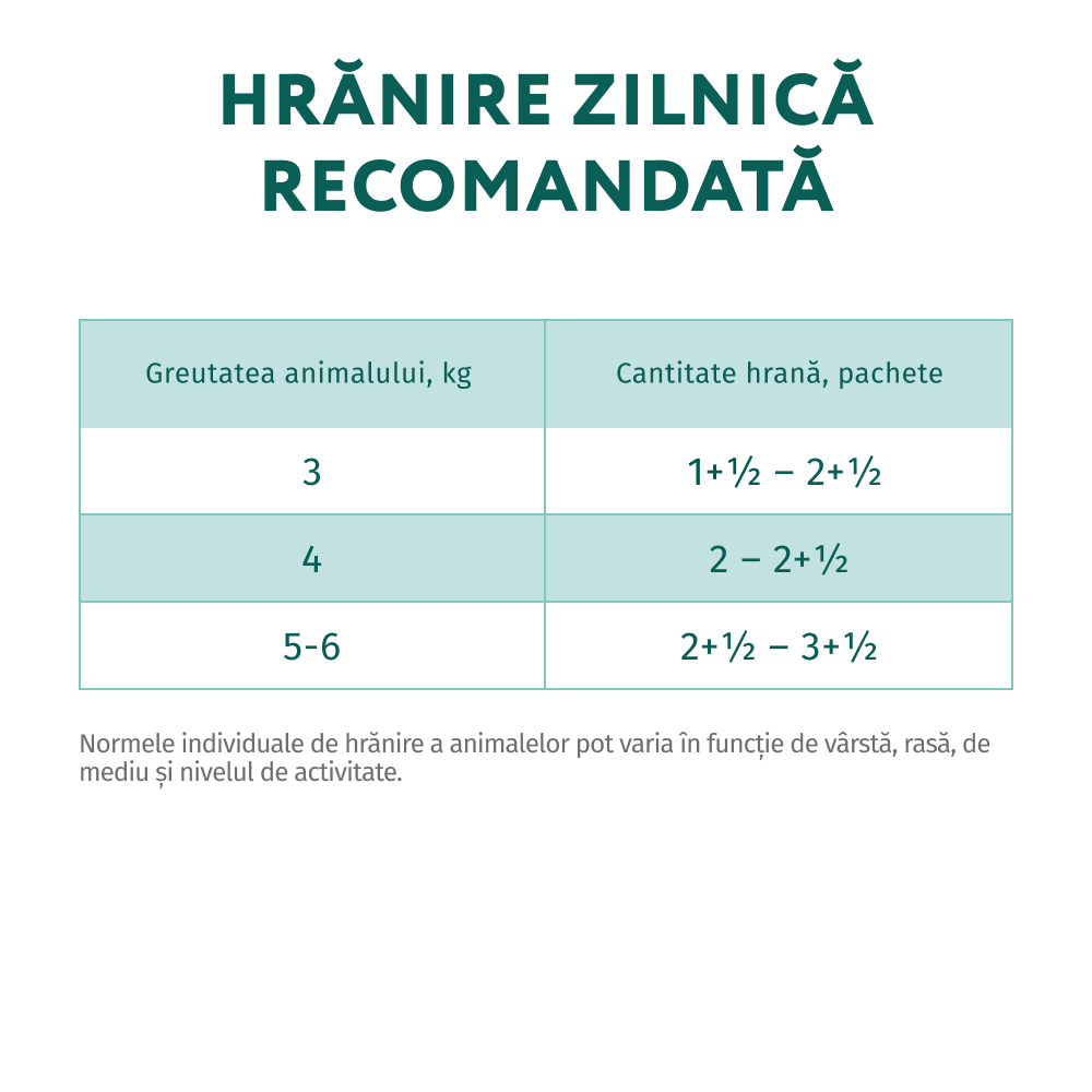 Introduceți hrana treptat în dietă timp de cel puțin 5 zile. Hrana se servește la temperatura camerei. După deschidere, păstrați produsul la frigider maximum 48 de ore. Asigurați pisicii apă proaspătă în permanență. Porțiile pot varia în funcție de vârstă, rasă și nivelul de activitate al pisicii.