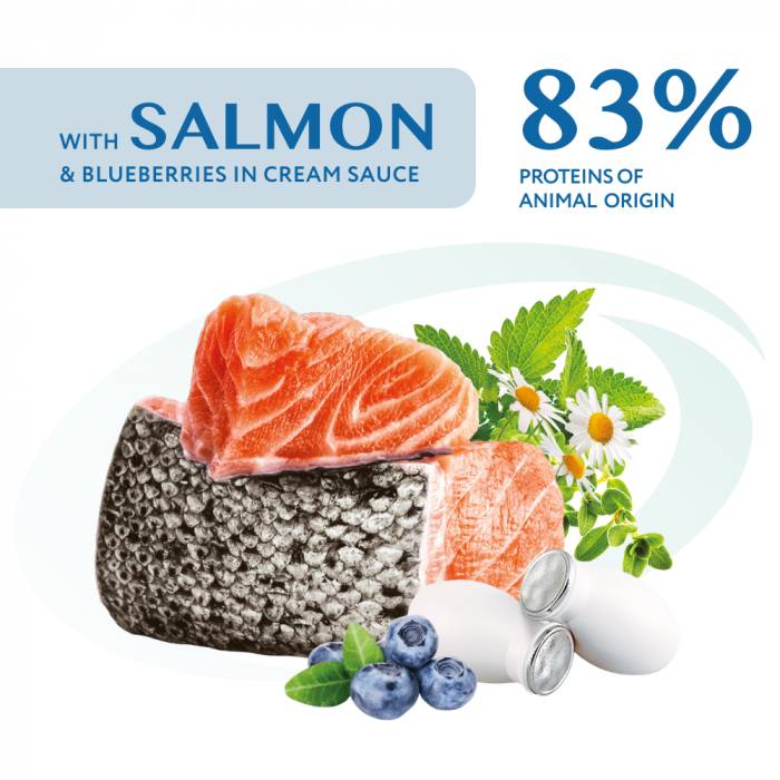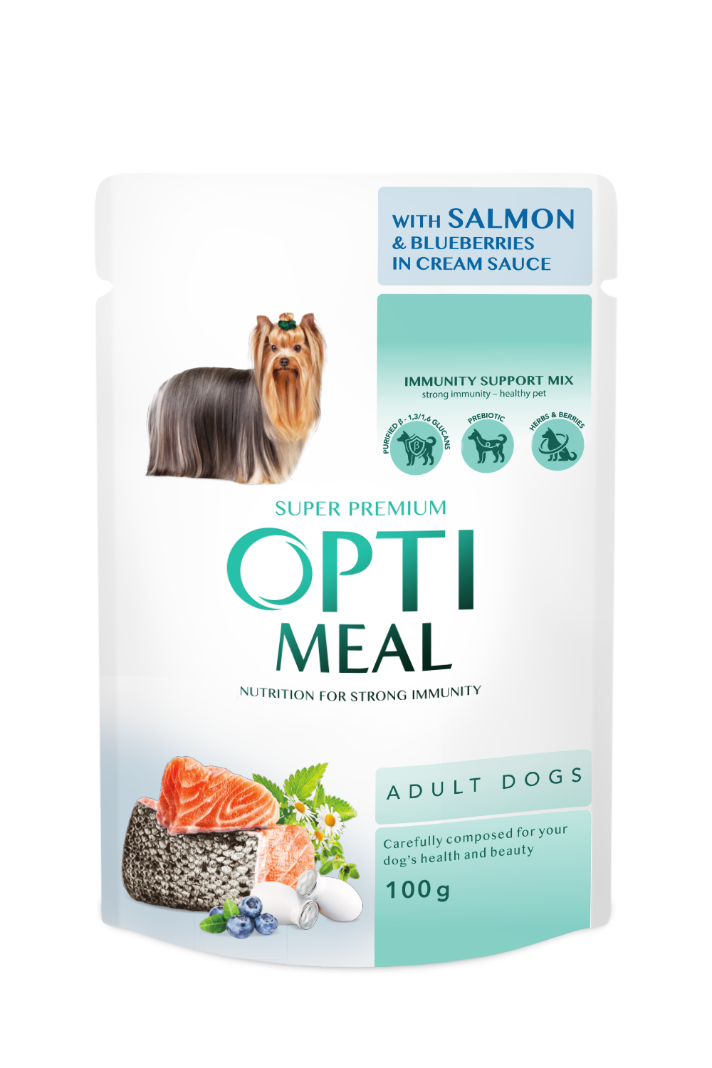 OPTIMEAL Plic Hrana Umedă pentru Câini Adulți, Somon și Afine în Sos de Smântână - 100g