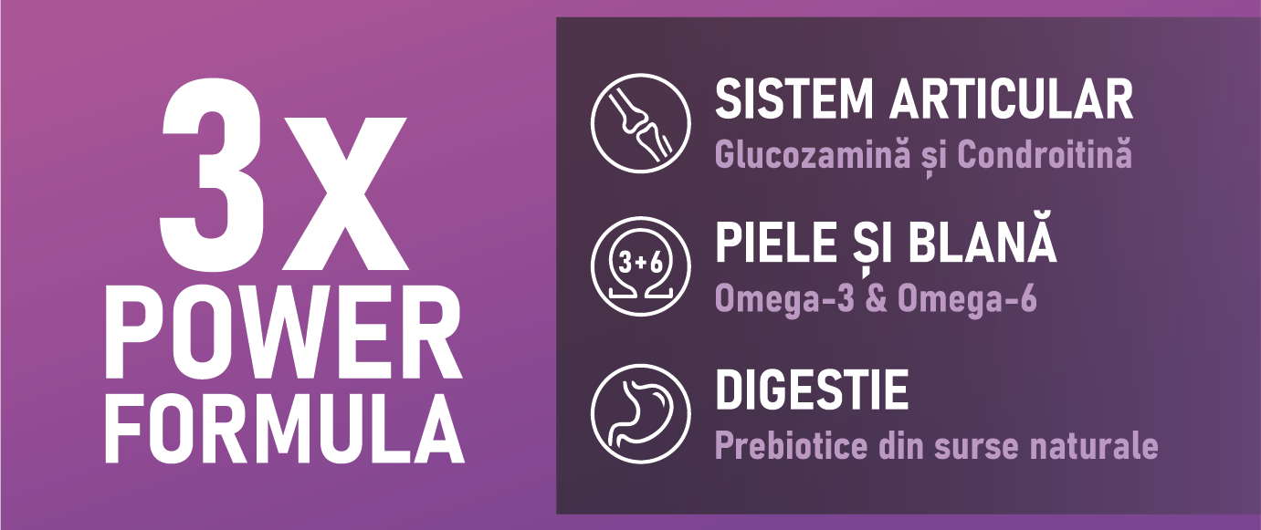 Pe lângă aceste beneficii, această hrană premium oferă suport și pentru:
