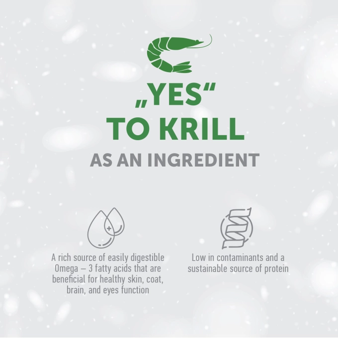 Krill-ul antarctic este o sursă naturală unică de Omega-3, care nu doar că susține sănătatea pielii și blănii, dar ajută și la reducerea inflamațiilor, contribuind la o stare generală de bine a câinelui.