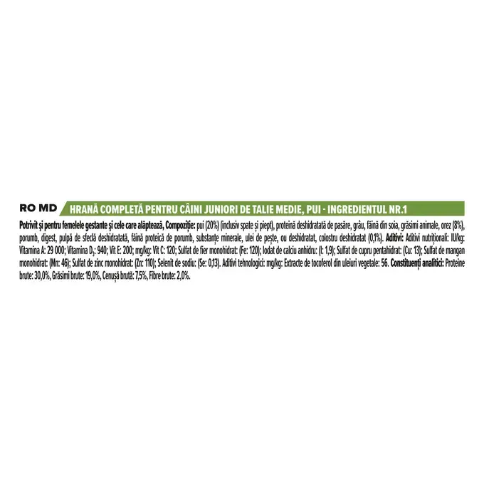 Purina PRO PLAN Healthy Start Medium Puppy cu Pui este hrana uscată de înaltă calitate, special formulată pentru puii de câine de talie medie (10-25kg), oferind nutrienți esențiali pentru o creștere sănătoasă și dezvoltarea unui sistem imunitar puternic. Conținând pui de înaltă calitate (20%) ca ingredient principal, aceasta promovează un răspuns imunitar optim și ajută la susținerea articulațiilor sănătoase ale cățelului tău.