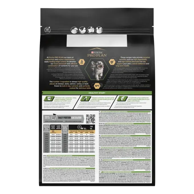 Purina PRO PLAN Healthy Start Medium Puppy este o hrană completă care sprijină dezvoltarea armonioasă a puiului tău până la vârsta de 12 luni, când va deveni adult. Aceasta este o alegere ideală și pentru femelele gestante și cele care alăptează, având în vedere nevoile nutriționale suplimentare în aceste etape. De asemenea, hrana contribuie la îngrijirea dentară completă datorită formulării sale speciale.