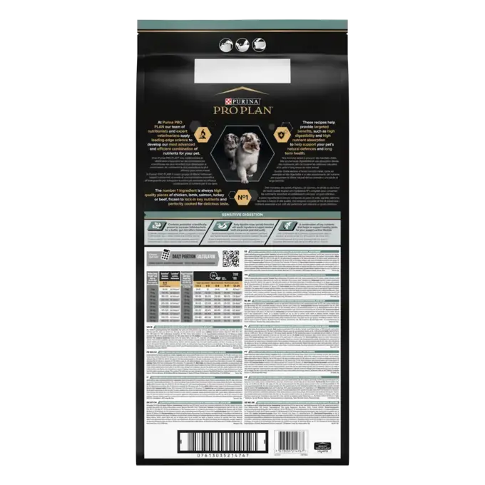 O hrană cu prebiotice benefice și proteine de calitate superioară, precum Purina PRO PLAN Sensitive Digestion cu Miel, ajută la menținerea unui tranzit intestinal sănătos și la dezvoltarea echilibrată a puiului tău.