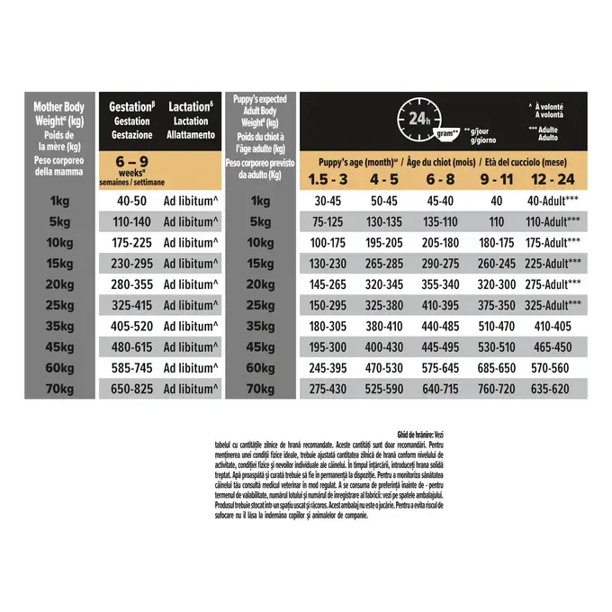 Cantitatea zilnică trebuie ajustată în funcție de vârsta, greutatea și nivelul de activitate al puiului.