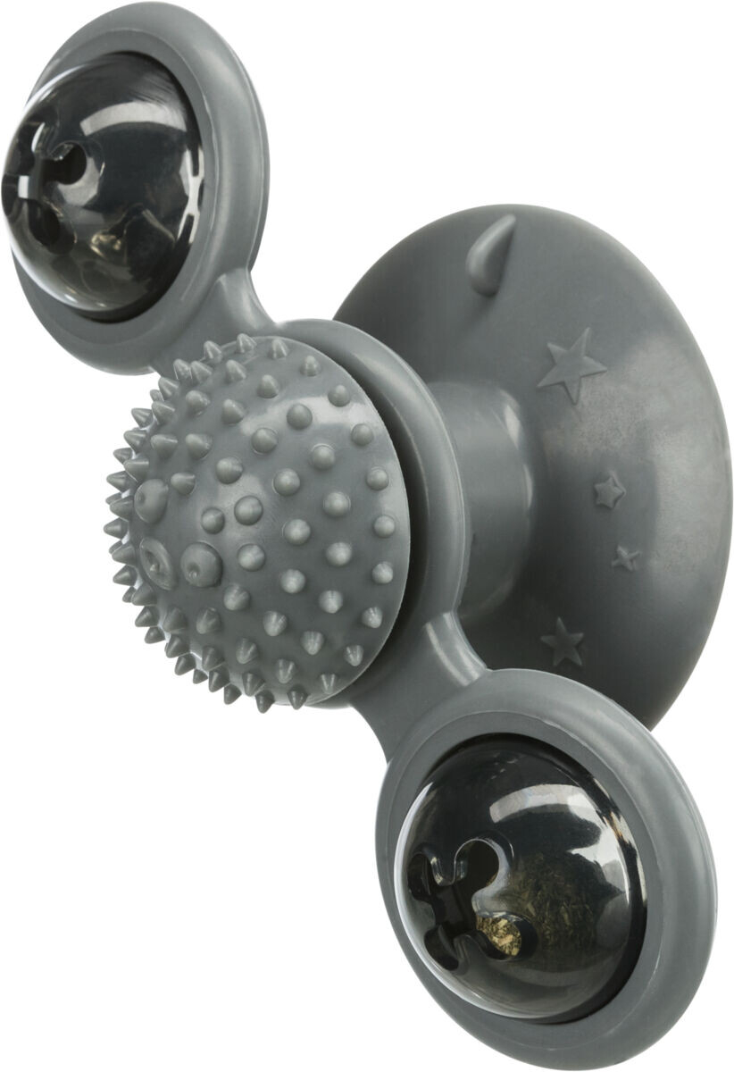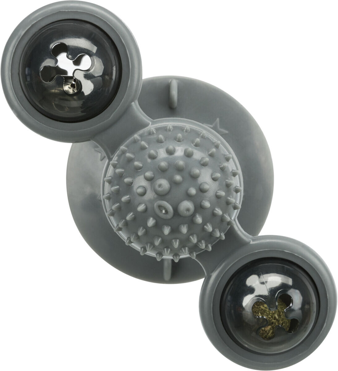 Oferă-i pisicii tale ore întregi de distracție cu această jucărie interactivă tip spinner! Se fixează cu ușurință pe geamuri sau alte suprafețe netede, atrăgând curiozitatea felinei tale. Cu un design inovator, jucăria conține un clopoțel și catnip, stimulând joaca activă și menținând pisica ocupată.