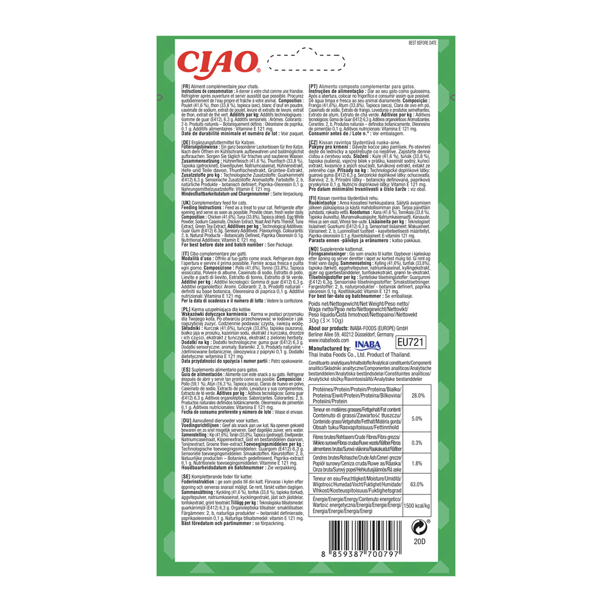 Îți prezentăm Churu Inaba Ciao Churu Bites – recompense delicioase și sănătoase pentru pisici, create pentru a le oferi momente de răsfăț și savoare. Aceste mici rulouri sunt preparate cu pui și ton, două surse excelente de proteine, pentru a satisface gusturile rafinate ale pisicii tale. Cu arome naturale și extract de ceai verde, aceste recompense sunt ideale pentru a oferi o gustare echilibrată și delicioasă.