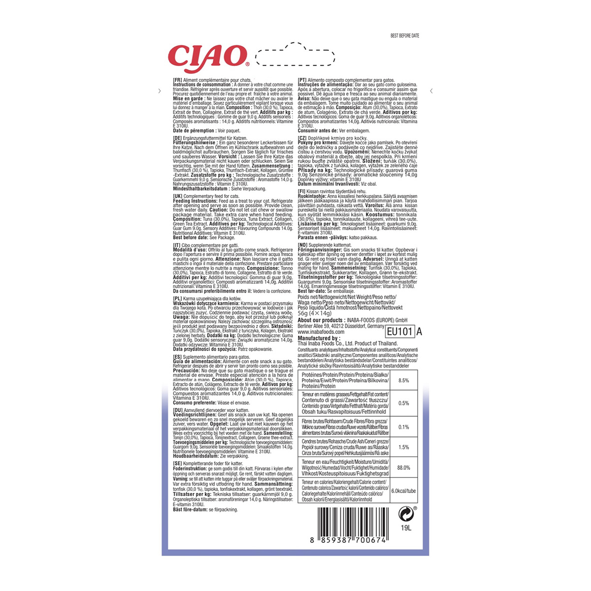 Inaba Ciao Churu cu Ton este o recompensă cremoasă, special formulată pentru a oferi un deliciu sănătos și nutritiv. Cu un conținut ridicat de umiditate, acest produs ajută la hidratarea pisicii, fiind ideal pentru pisicile care consumă mai puțină apă. Tonul sălbatic folosit provine din surse de calitate și oferă proteine esențiale pentru o dietă echilibrată.