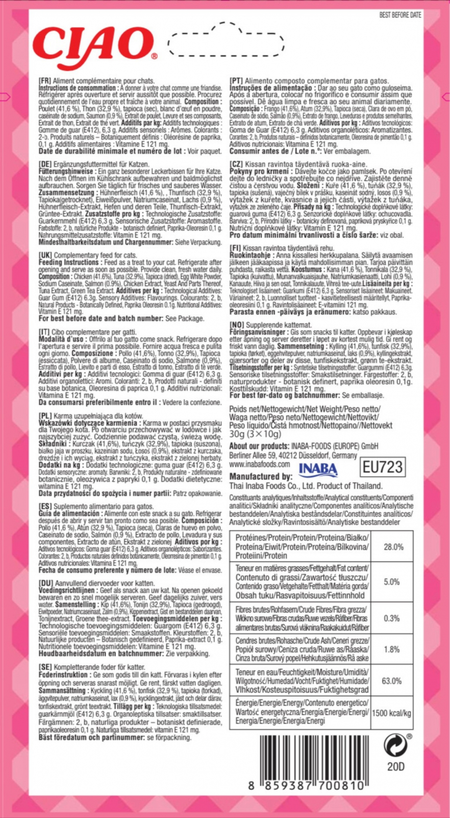 Churu Inaba Ciao Churu Bites Recompense pentru Pisici cu Pui, Ton și Somon - 3x10g