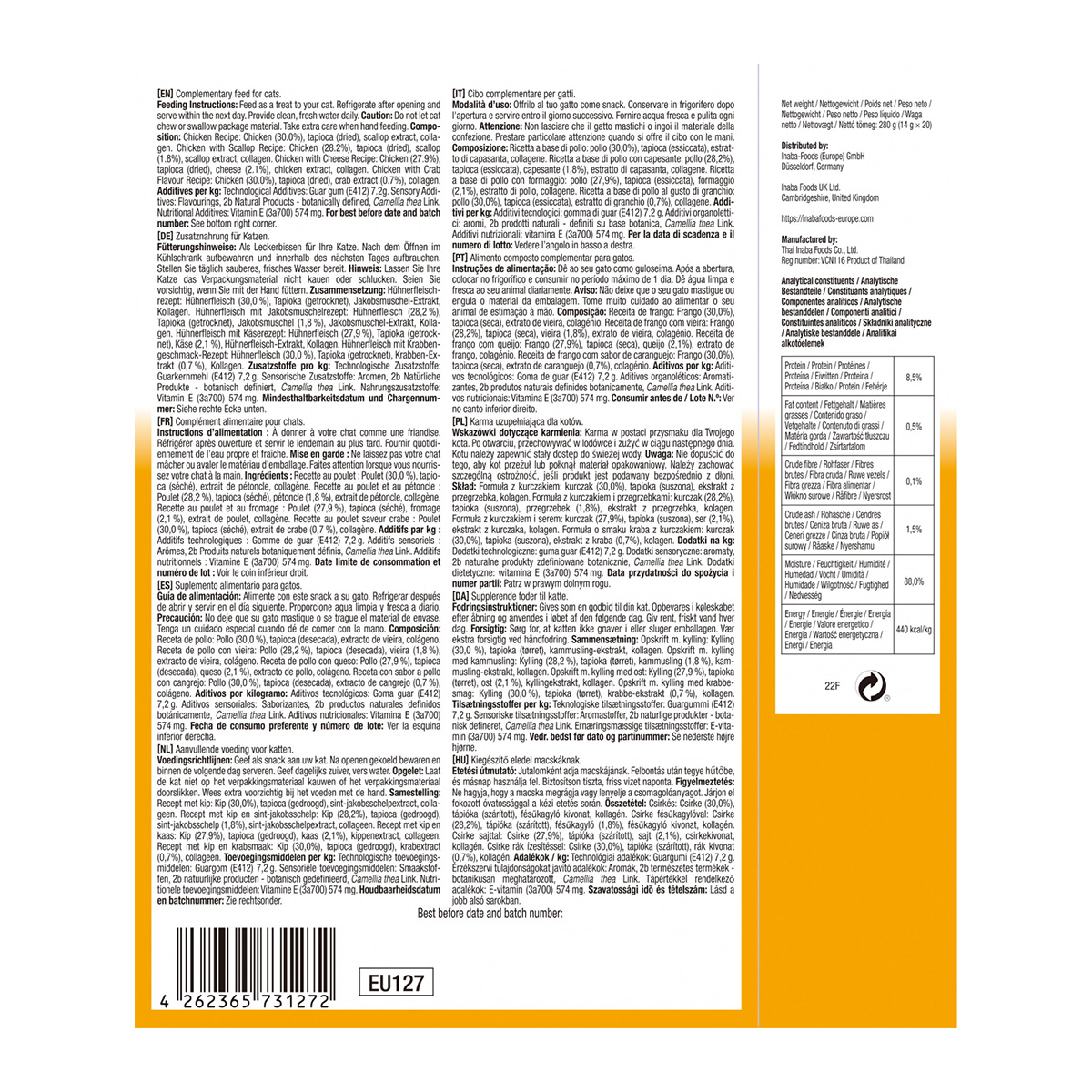 Oferă pisicii tale o gustare de neuitat cu Churu Inaba Ciao Varieties cu Pui! Cu o textură cremoasă și un gust delicios, aceste recompense sunt perfecte pentru răsfăț, hrănirea manuală sau administrarea pastilelor. Un mod inovator și distractiv de a petrece timp cu pisica ta!