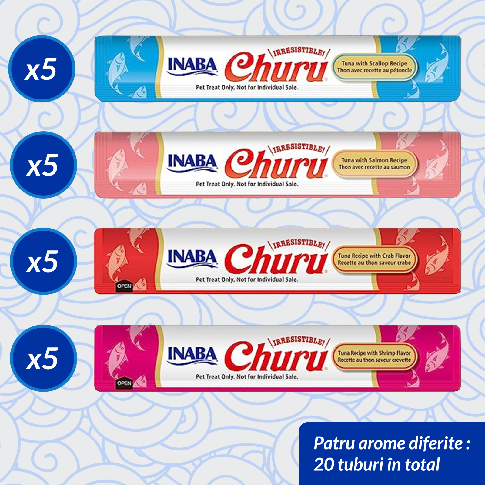 Churu Inaba Churu Inaba Ciao, Varieties Ton si Fructe de Mare, Recompense cremoase pentru pisici, Pachet EU125, 20 x 14g