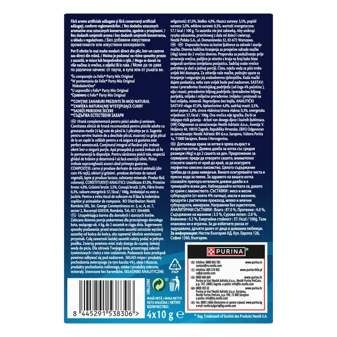 Formula are un aport caloric redus comparativ cu Felix Party Mix Original, fiind potrivită pentru răsfăț frecvent.