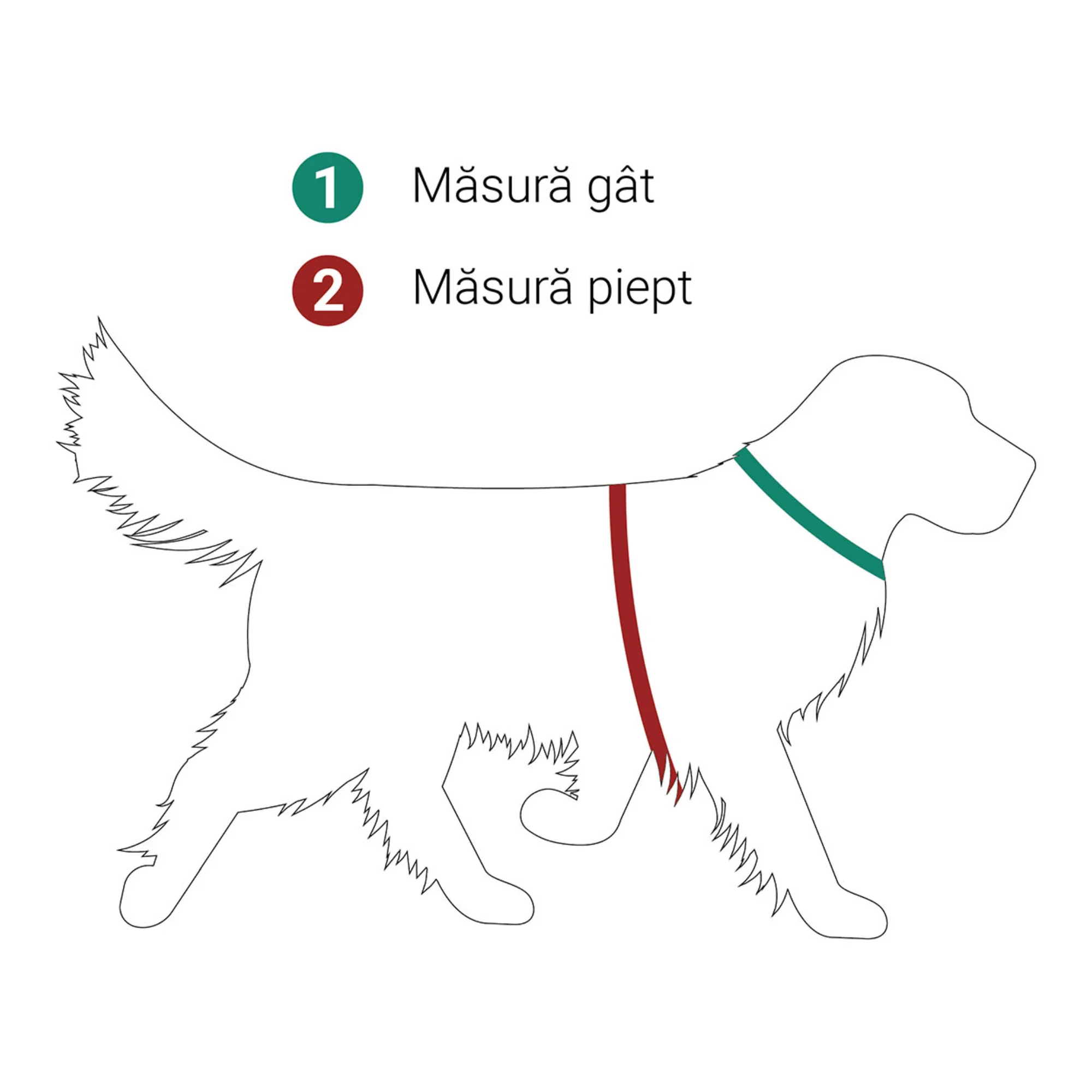 Pentru a vă asigura că hamul se potrivește corect câinelui dumneavoastră, măsurați-l la baza gâtului și în jurul pieptului.